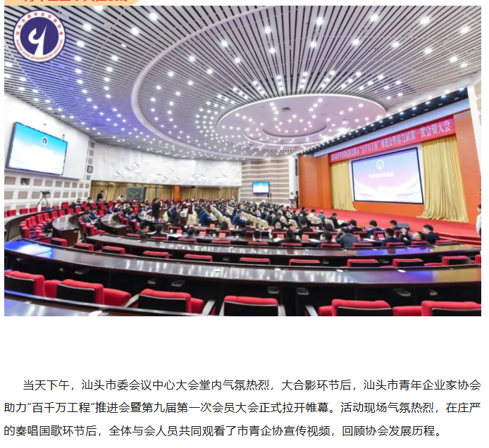 8月2日下午,汕头市青年企业家协会助力“百千万工程”推进会暨第九届第一次会员大会在汕头市委会议中心大会堂隆重召开;当日傍晚,市青企协第九届就职典礼在国际大酒店续写华章。两项活动紧密衔接,既凝聚了青年企业家服务家乡发展的共识,更以开放姿态开启跨组织合作新篇。四川潮人海外联谊会、四川省潮汕商会党支部书记周爱群应邀出席,并与汕头市青年企业家协会正式缔结友好协会。