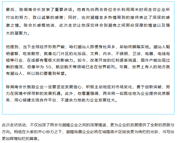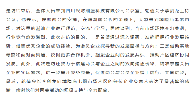 陈湖南会长、周昭鹏执行会长率队走访成都城隍庙电器市场潮汕企业