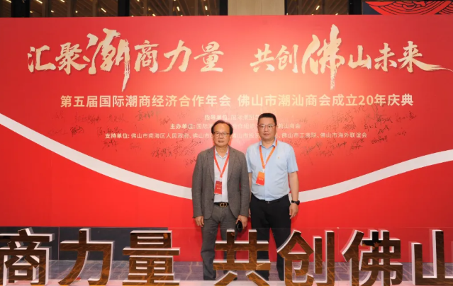四川潮人海外联谊会会长陈湖南,秘书长连俊潮应邀出席第五届国际潮商经济合作年会、佛山市潮汕商会成立20周年庆典。