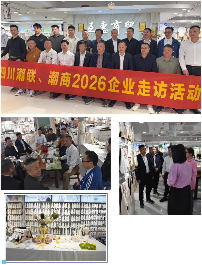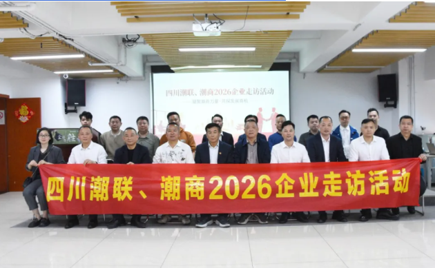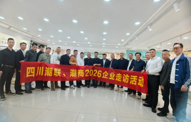 为深入倾听会员企业发展心声,精准把握企业发展需求,搭建乡贤资源共享、互助共赢的优质平台,4月13日下午,四川潮人海外联谊会、四川省潮汕商会开展会员企业实地走访活动。本次活动由四川省潮汕商会会长余鹤鸣带队,执行会长周昭鹏,2026年3-4月轮值会长林杰仕,常务副会长黄逸光、胡新平、林浩源,副会长吴浩东、杨恩林,理事马信武、李育滨、陈焕雄、陈锡涛、卢晓彬、苏初民、苏伟强、杨舜伟,会员林杰丰、张平章、杜宏豪,四川瑞潮兴有限公司总经理连俊财,办公室副主任李梦迪等一行先后走进多家会员企业,通过实地考察、座谈交流等形式,与会员企业面对面沟通、心贴心交流,切实践行商会服务会员的核心使命。