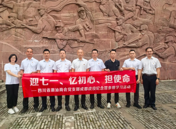 为庆祝中国共产党成立 104 周年,重温党的光辉历史,继承和发扬党的光荣传统与优良作风,引导广大党员筑牢理想信念、锤炼党性修养,6月26日上午,四川潮人海外联谊会、四川省潮汕商会党支部书记周爱群,常务副会长、秘书长、入党考察对象连俊潮,常务副会长、入党考察对象李剑龙,理事、入党积极分子陈焕雄,理事、党员郑辉杰,理事、优秀青年林楚杰,会员、党员黄树丰,办公室副主任、入党积极分子李梦迪以及驻会副秘书长陈洪等到成都战役纪念馆组织开展了“迎七一、忆初心、担使命”参观成都战役纪念馆主题主题党日学习活动,深切缅怀革命烈士。